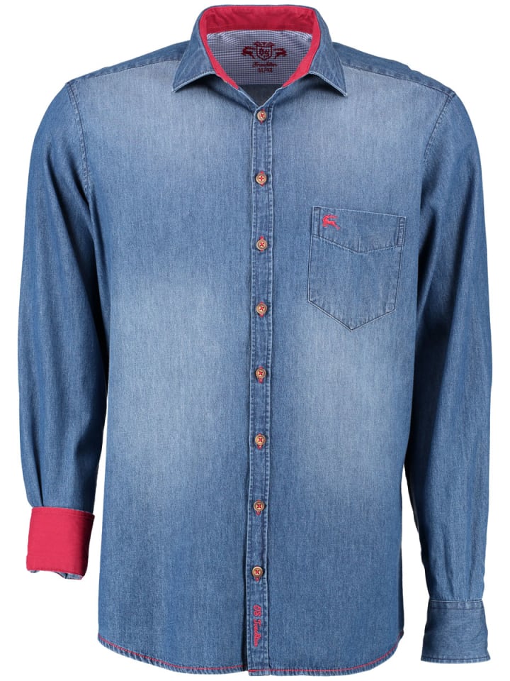 Стильная джинсовая рубашка от OS Trachten. Стираный эффект идеально подходит как для повседневной носки, так и для ношения с ледерхозенами в пивной палатке. 100% хлопок. Воротник с акульим вырезом. Произведено на сертифицированных фабриках-партнерах.