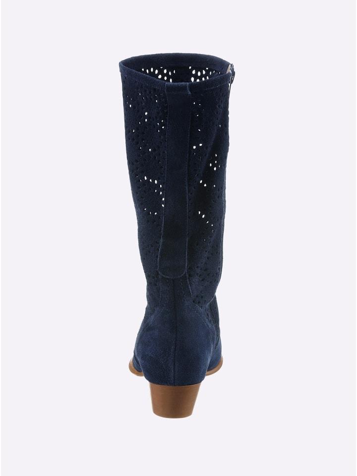 Ботинки. Сделано в Испании. Изготовлены из мягкой коровьей кожи (гладкой или замшевой), с цветочными вырезами. Застежка-молния. Подкладка и стелька: кожа. Размеры голенища (В/Ш) примерно 31 x 35 см. Каблук ковбойский, высотой примерно 30 мм.