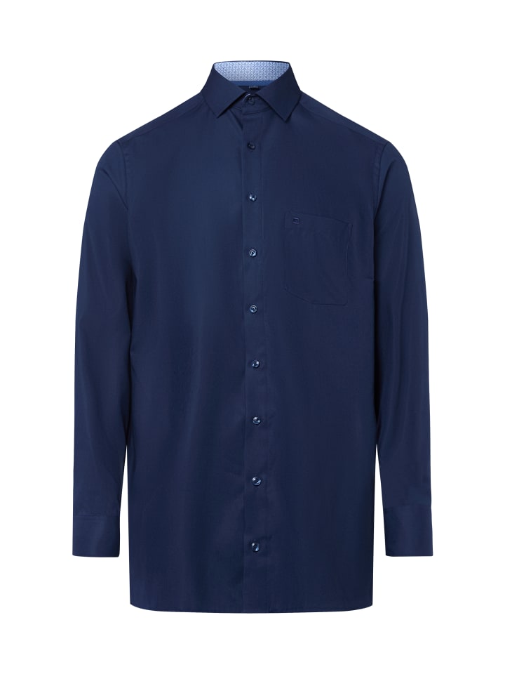 Для деловых встреч и элегантного отдыха: рубашка OLYMP из чистого хлопка классического дизайна с воротником Kent и гладкой планкой на пуговицах, подчеркнутой накладным нагрудным карманом.