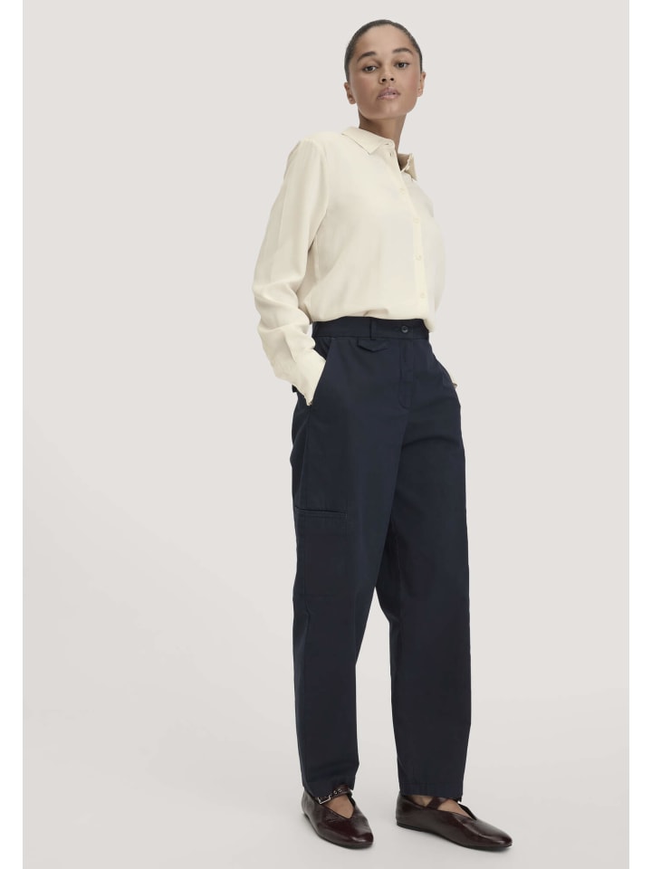 Трудоголик. Сова. Герой дня. Модный крой «бочонок» - свободный сверху и суженный книзу - придает этим брюкам из экологически чистого органического хлопка современный силуэт, а карманы-карго обеспечивают повседневную практичность. А благодаря небольшому количеству эластана даже напряженные дни не станут проблемой.