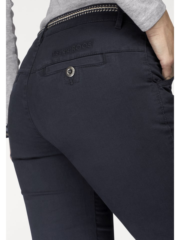 Брюки чинос прямого кроя от Kangaroos с двухцветным плетеным поясом на шнурке. Стандартная посадка. Боковые карманы, прорезные карманы на пуговицах сзади. Модель с подвернутым краем для создания повседневного образа. Мягкая эластичная ткань.