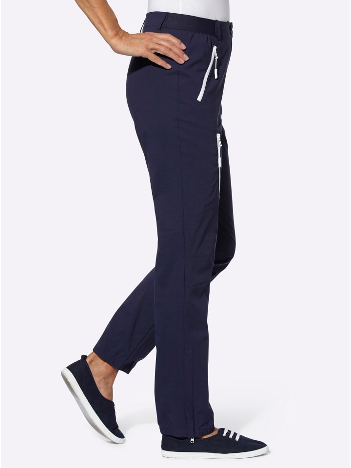Для всех, кто любит проводить время на свежем воздухе: водоотталкивающие функциональные брюки с эластичным поясом, шлевками для ремня, двумя кнопками и застежкой-молнией. Два кармана на молнии контрастного цвета. Практичная деталь - контрастный карман на молнии на уровне бедра. Потайная боковая молния на длинных брючинах с эластичными манжетами позволяет легко надевать и снимать брюки. Изготовлены из переработанного полиамида. Длина брючины около 34 см. Ремень в комплект не входит.