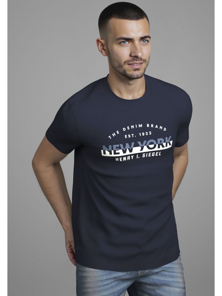 Рубашка с круглым вырезом темно-синего цвета H.I.S.