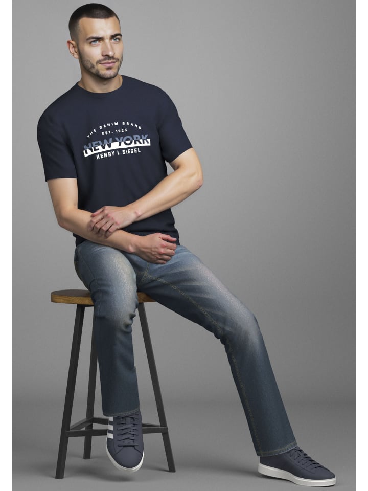 Классическая мужская футболка с круглым вырезом от HIS и напечатанными акцентами. Классический крой. Короткие рукава. Мягко драпирующийся верх благодаря эластичному трикотажному полотну.