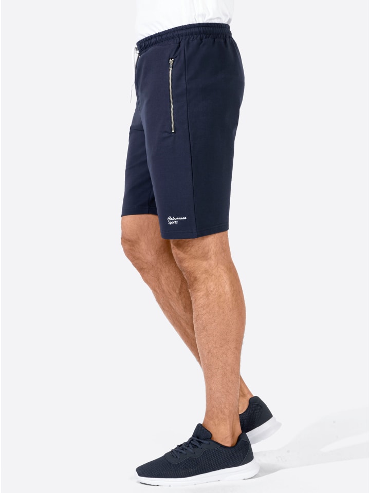 Короткие шорты для отдыха с декоративной вышивкой Catamaran Sports на штанине. Эластичный пояс с кулиской и контрастный шнурок по внешнему краю. Два боковых кармана с металлическими молниями. Один накладной карман сзади.
