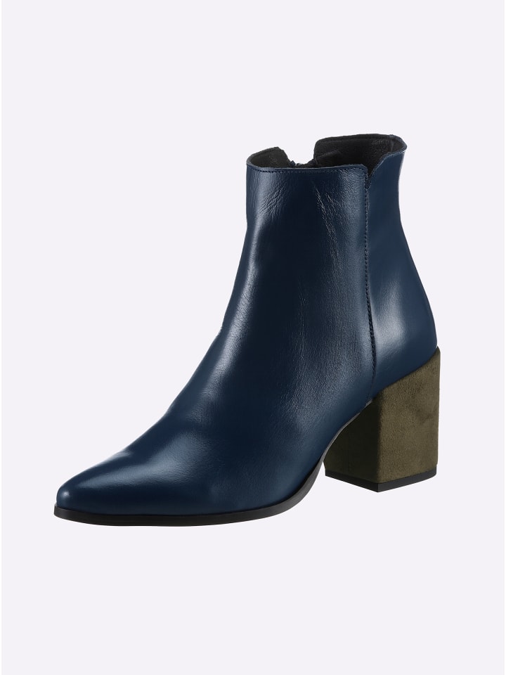 Ботинки, произведенные в Португалии. Изготовлены из кожи наппа. Высокий комфорт благодаря особо мягкой подкладке. Застегиваются на молнию. Подкладка и стелька из антибактериального текстиля. Гибкая резиновая подошва. Каблук-бочка высотой около 70 мм.