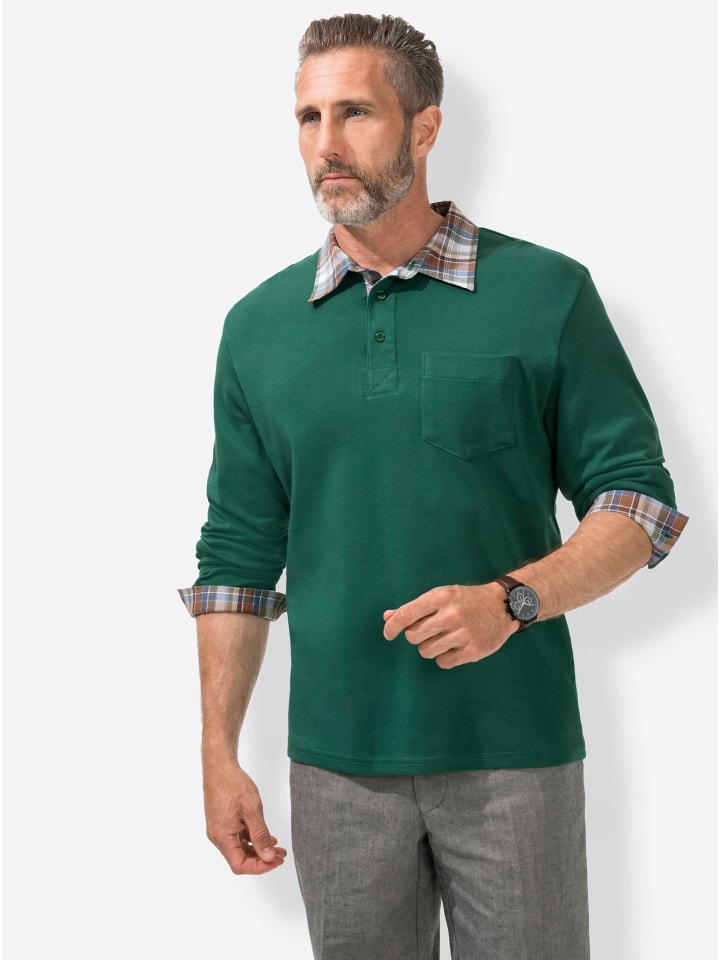 Два в одном! Выглядит так, будто вы надели клетчатую рубашку под футболку, но клетчатый воротник и клетчатые манжеты с застежкой на пуговицы имеют искусную отделку. Эта рубашка-поло с длинными рукавами, планкой на пуговицах и нагрудным карманом обеспечивает идеальную посадку, не создавая лишнего объема. Приятный для кожи материал.