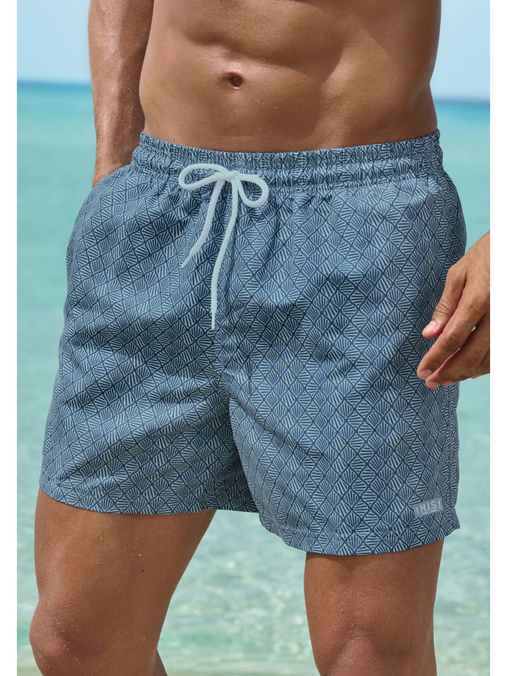 Плавающие шорты HIS с графическим принтом. Эластичный пояс на шнурке. Задний карман на липучке. Сетчатые трусы с внутренним карманом. Прямой крой. Мягкая микрофибра с добавлением переработанного полиэстера.