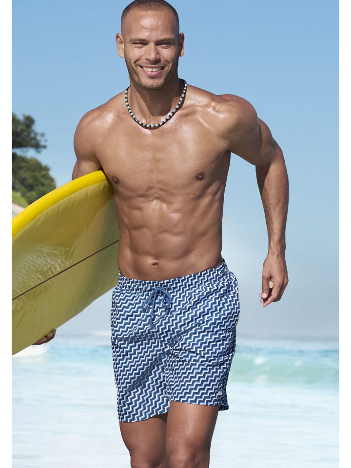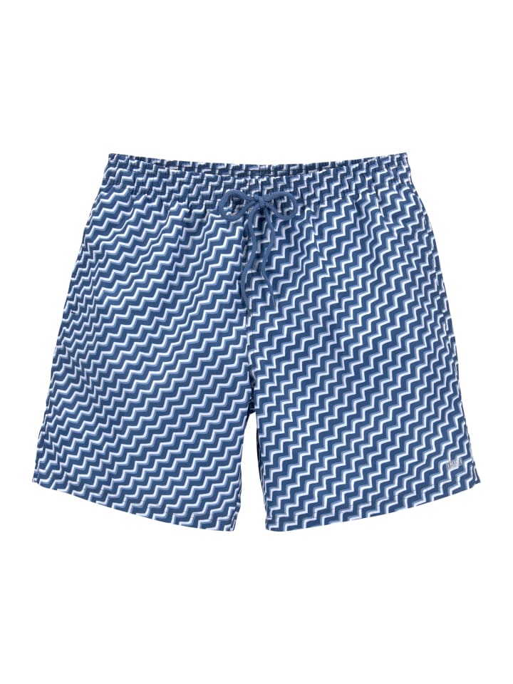 Классные плавки-шорты от HIS с зигзагообразным принтом. Эластичный пояс с регулируемой кулиской. Боковые карманы. Мягкая микрофибра с переработанным полиамидом.