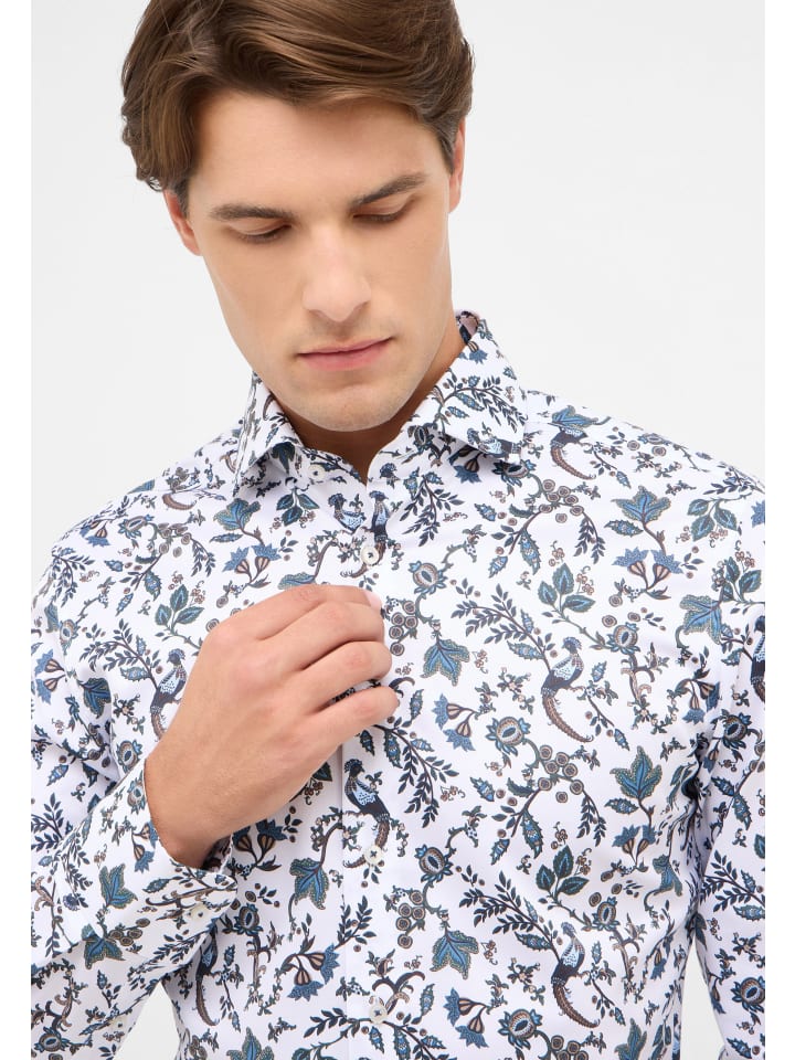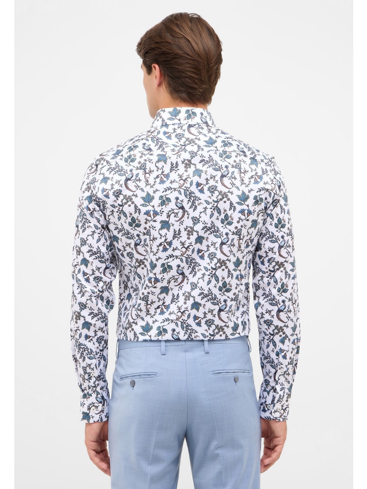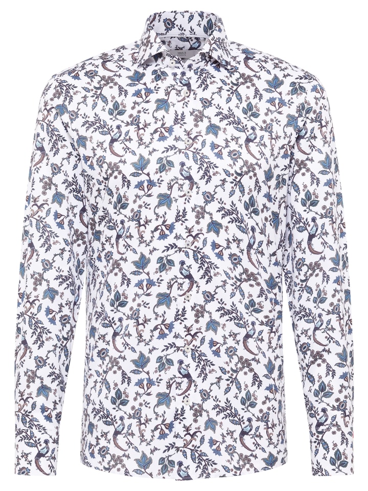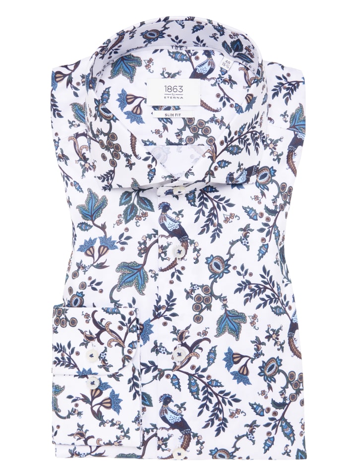 Откройте для себя стильную мужскую рубашку с принтом из премиальной линейки 1863 by ETERNA с акульим воротником и отворотом для современного образа.