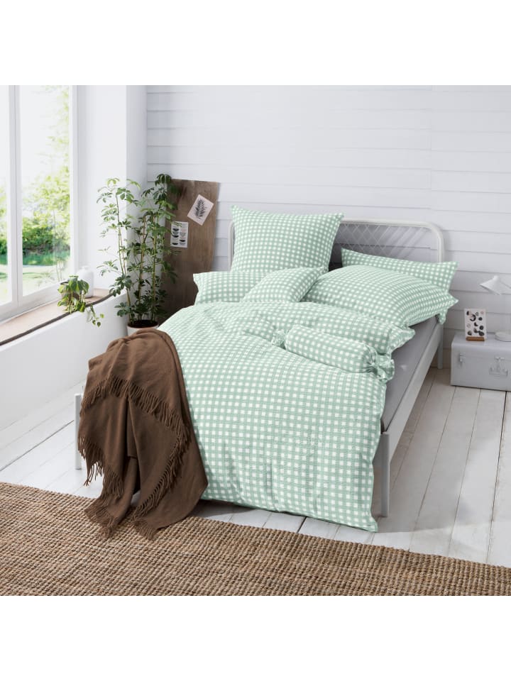 Постельное белье из сирсакера Kronach в нефрите Erwin Müller, 155 x 200 + 80 x 80 см