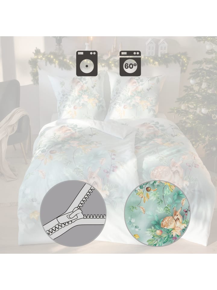 Мягкое фланелевое постельное белье Estella «Фердинанд». Лиса и олень среди листьев наполнят ваш дом атмосферой природы. Благодаря высококачественной цифровой печати цвета сохраняют свою яркость и насыщенность. Побалуйте себя нежным и мягким постельным бельем холодными зимними вечерами. Односторонний начес с особой пушистой поверхностью дарит коже приятные ощущения: он согревает, дышит и регулирует температуру. Легко надевать благодаря практичной молнии.