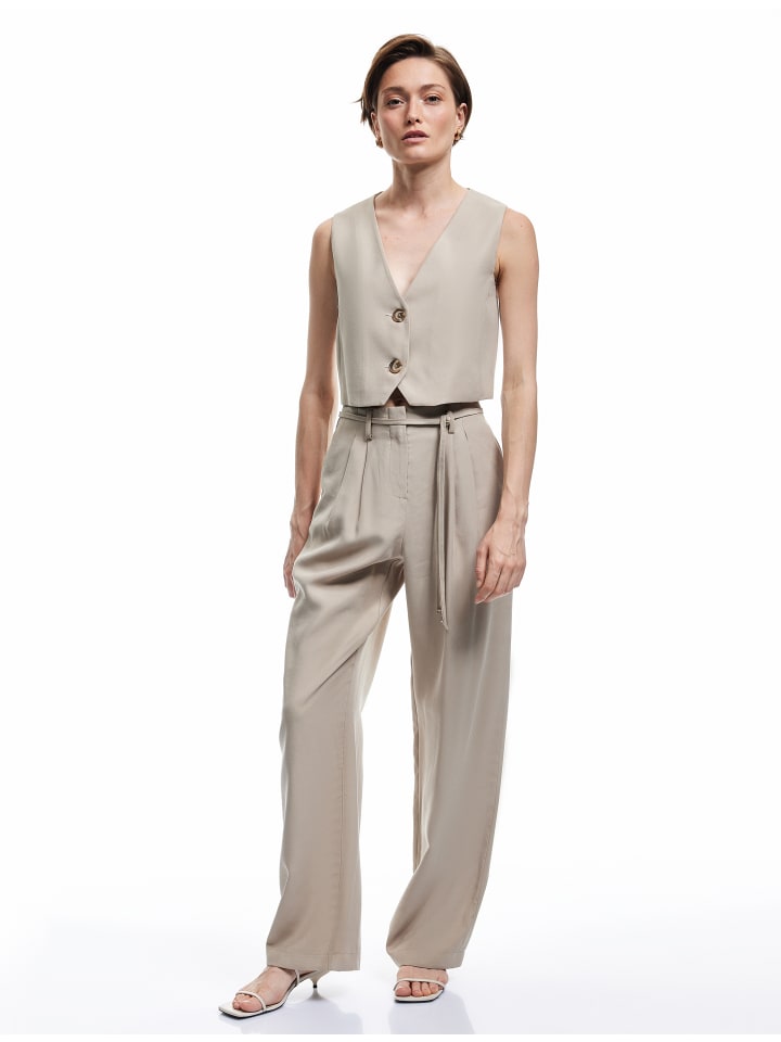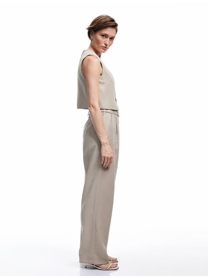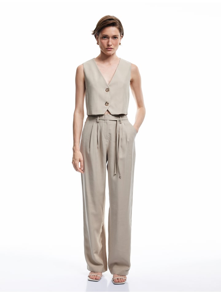 Эти стильные брюки-кюлоты имеют современный классический крой. Они дополнены очаровательным поясом и широкими брючинами для непринужденного образа. Благодаря практичным боковым карманам они сочетают в себе функциональность и элегантность. Идеально подходят для повседневной носки или официальных мероприятий.