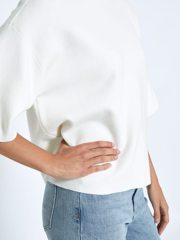 Откройте для себя непринужденную элегантность с футболкой MSLupi Knit. Тщательно обработанная текстурированная трикотажная ткань красиво драпируется, создавая изысканный силуэт. Высокий вырез добавляет элегантности, идеально дополняя свободные, объемные рукава и обеспечивая комфорт без ущерба для стиля. Бесшовное сочетание вискозы LENZING ECOVERO и нейлона обеспечивает роскошную мягкость и нежность к коже. Сочетайте эту универсальную вещь с брюками строгого кроя для создания элегантного офисного образа или с любимыми джинсами для непринужденной атмосферы выходного дня.