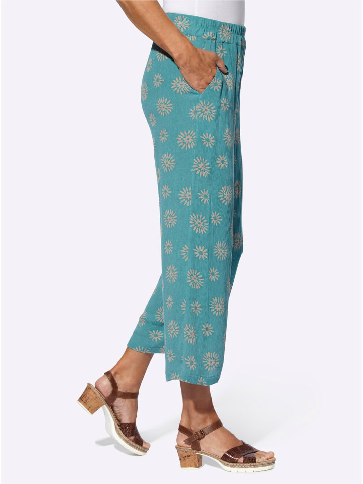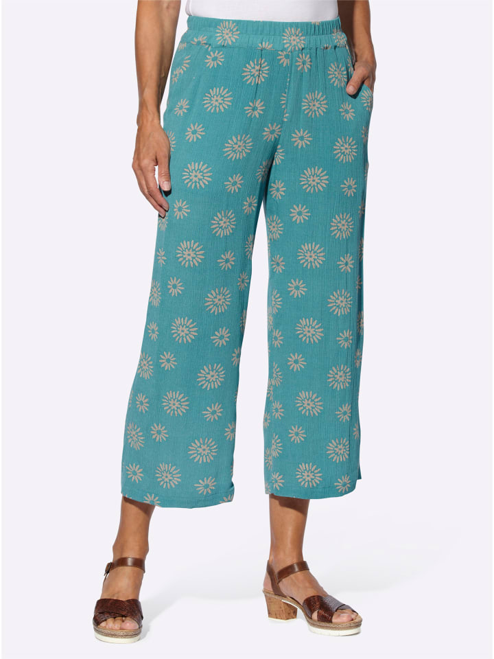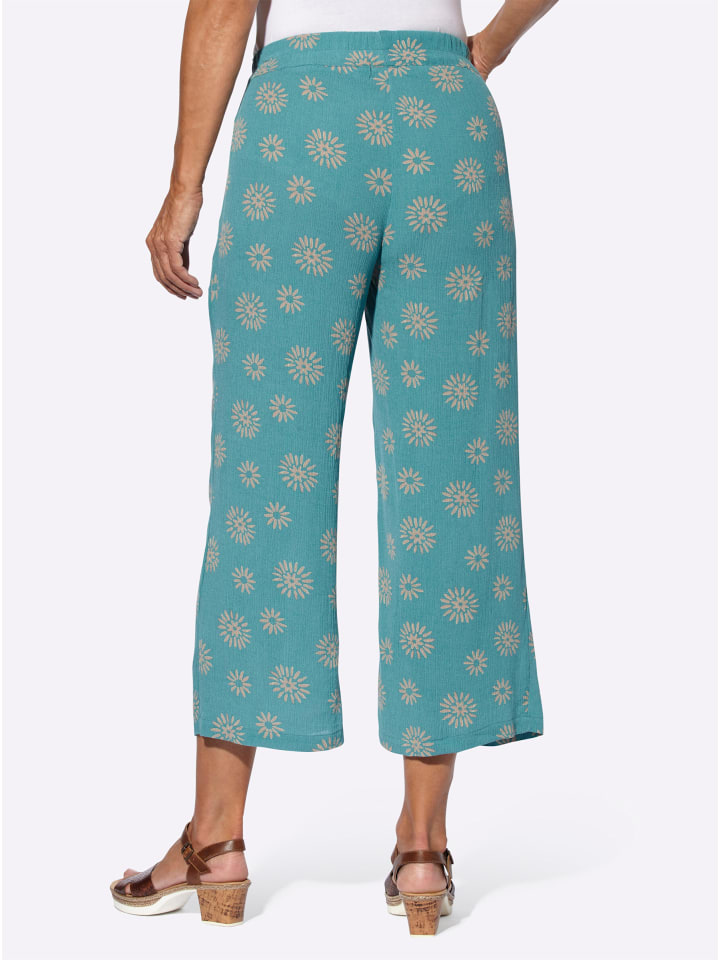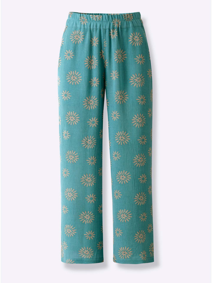 Прекрасно удобные брюки с принтом из текстурированной ткани, не требующей особого ухода, с удобным фасоном, который легко надевать. Эластичный пояс и широкие штанины. Длина брючины примерно 58 см.