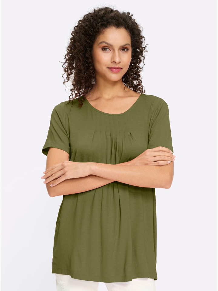 Рубашка. Мягкая, струящаяся ткань из вискозы качества ECOVERO от Lenzing. А-образный силуэт, подчеркивающий фигуру, со складками на круглом вырезе; короткие рукава.
