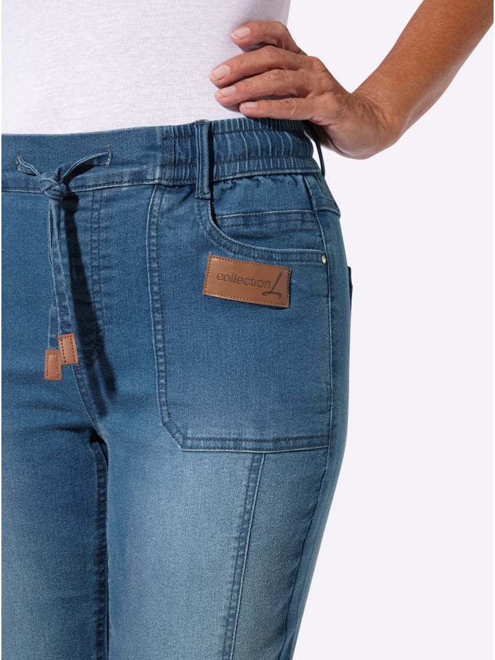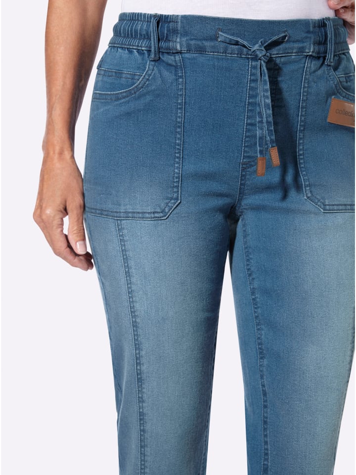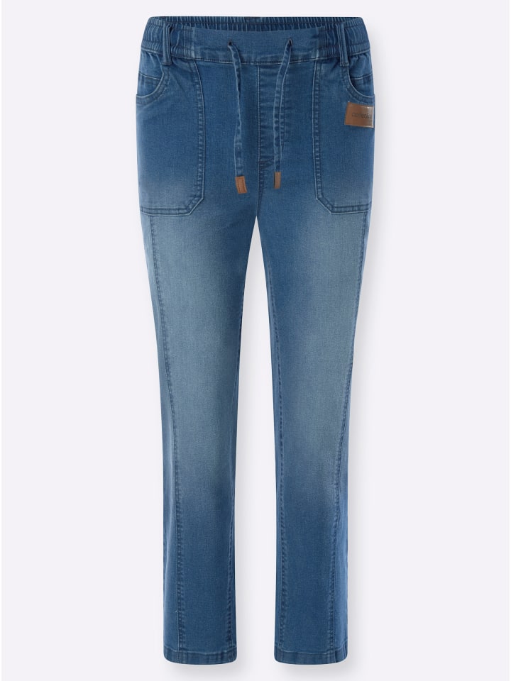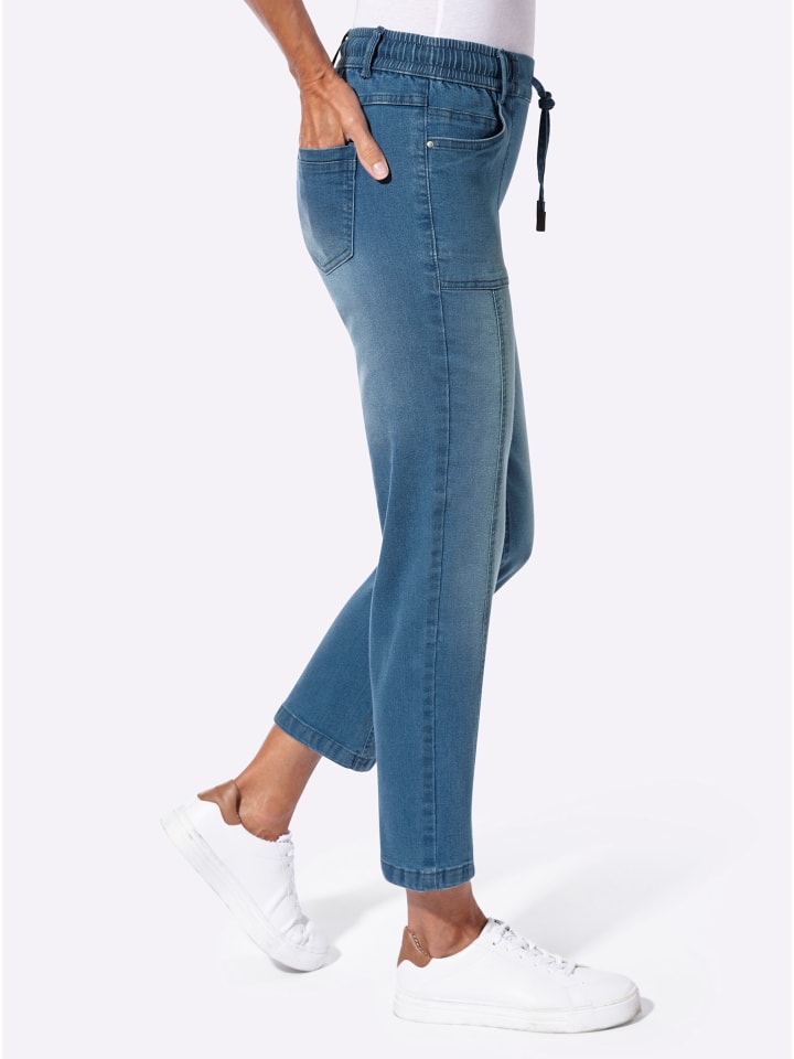 По-настоящему повседневный и невероятно удобный! Джинсы 7/8 с удобным эластичным поясом, гладким спереди, чтобы не создавать лишнего объема. Шлевки для ремня и шнурок с завязкой. Два накладных кармана. Ширина брючины примерно 40 см. Соответствует инициативе «Хлопок, сделанный в Африке».