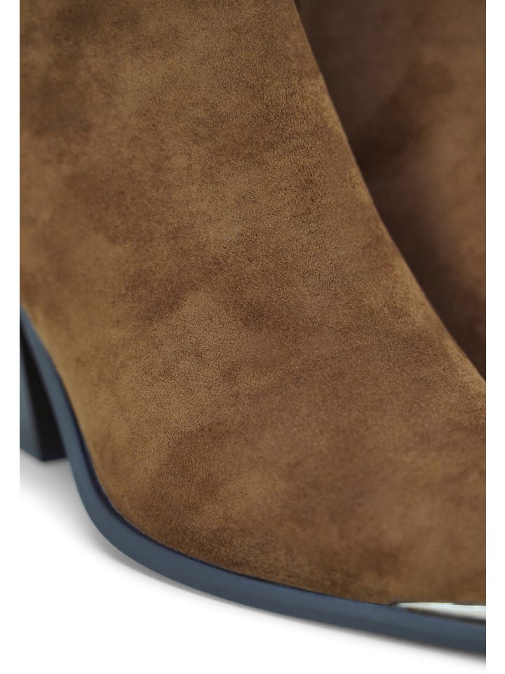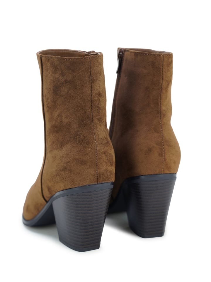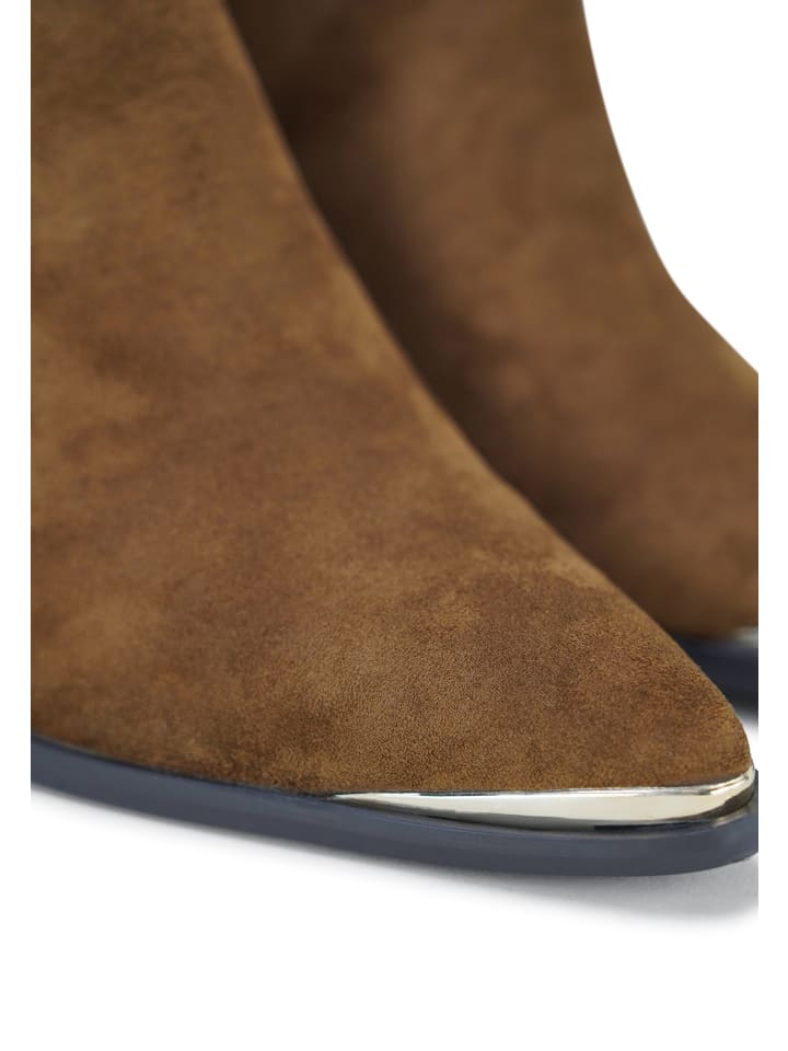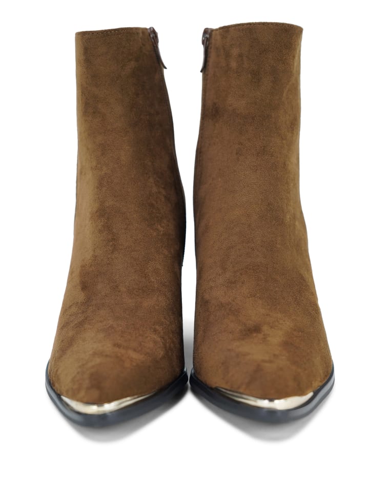 Ботинки IVIRA от Findlay привносят очарование современного вестерна в вашу повседневную жизнь - элегантная интерпретация, идеально подходящая для повседневной носки. Классический блочный каблук и лаконичный силуэт сочетаются с мягкой искусственной замшей, а узкая золотистая металлическая полоска вдоль передней подошвы добавляет стильный акцент.