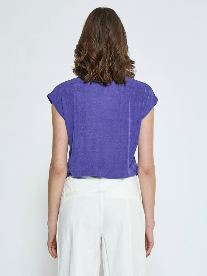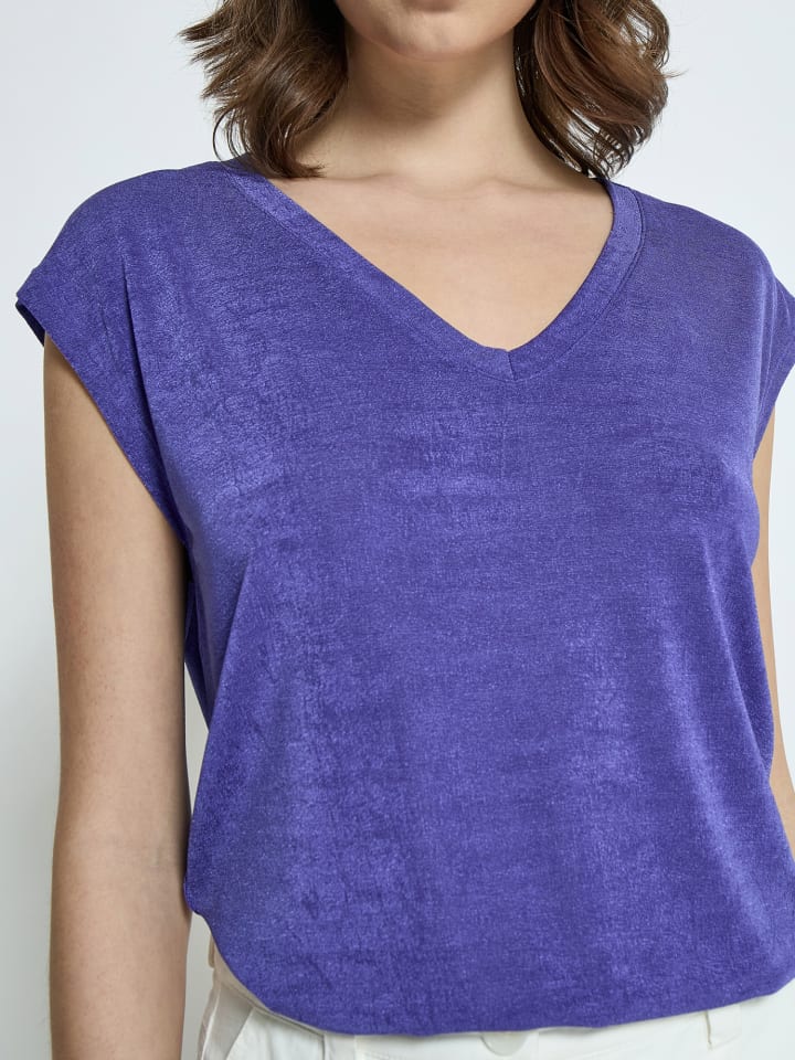 Легкая футболка с очень короткими рукавами. Футболка имеет круглый вырез горловины и свободный крой.