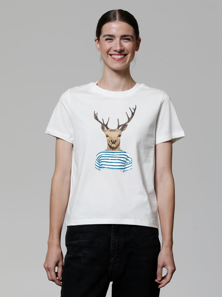 Футболка с круглым вырезом в современном повседневном стиле для женщин. Эта футболка была произведена в справедливых условиях труда, имеет сертификат Fair Wear Foundation, а также GOTS (Глобальный стандарт органического текстиля, BCS 35828) и изготовлена из сертифицированного органического хлопка.