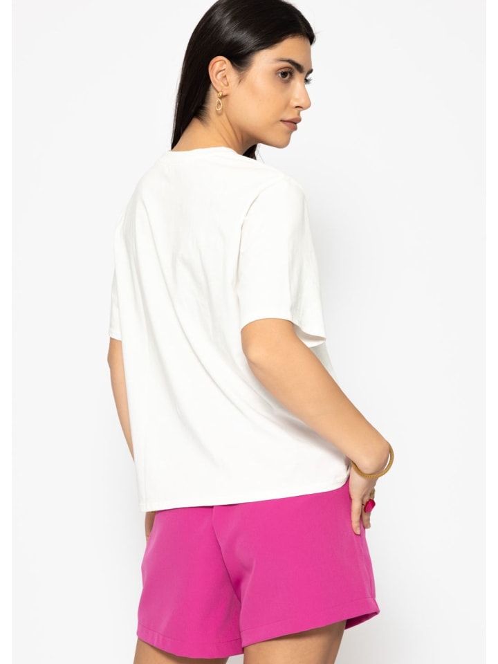 Эта повседневная футболка - идеальный выбор для стильного повседневного образа. Свободный крой, короткие рукава и классический круглый вырез горловины. Декоративная надпись на уровне груди добавляет стильный акцент и придает однотонному дизайну современный вид. Футболка из мягкой смеси хлопка и эластана обеспечивает не только исключительный комфорт, но и оптимальную свободу движений. Благодаря своему простому, но выразительному виду эту футболку можно комбинировать разными способами - с джинсами, шортами или юбками, - что делает ее простым спутником на каждый день, для отдыха или отпуска.