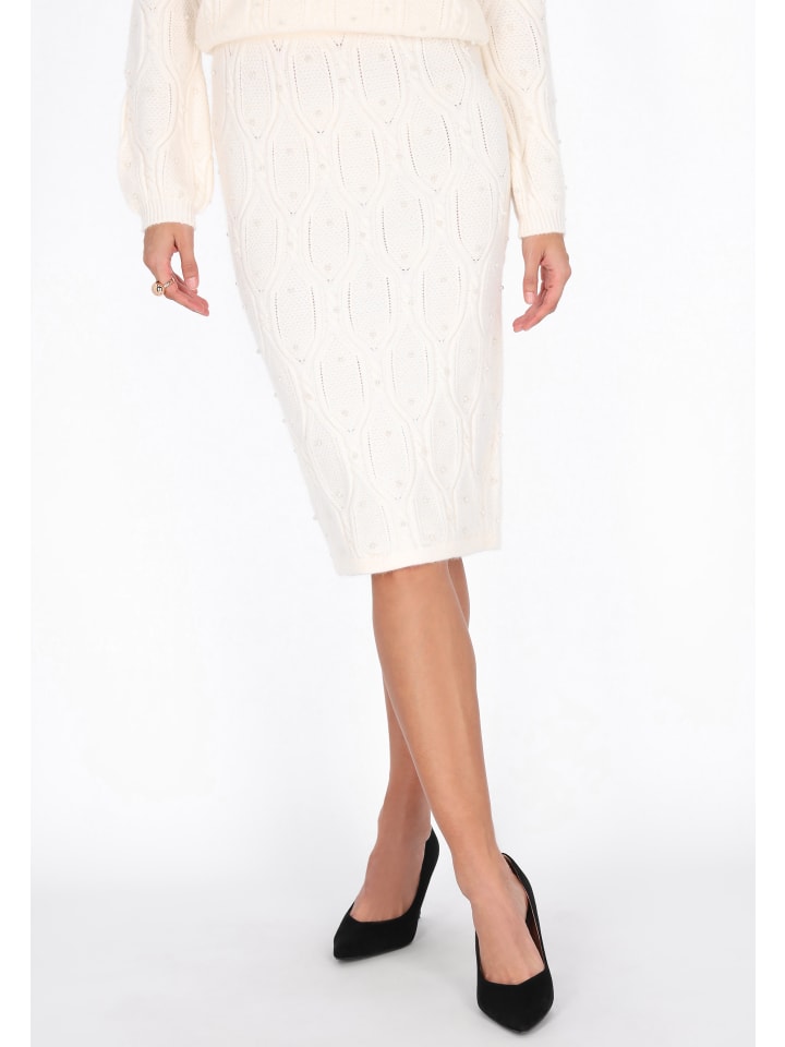 - Юбка миди прямого кроя с высокой талией и бусинами