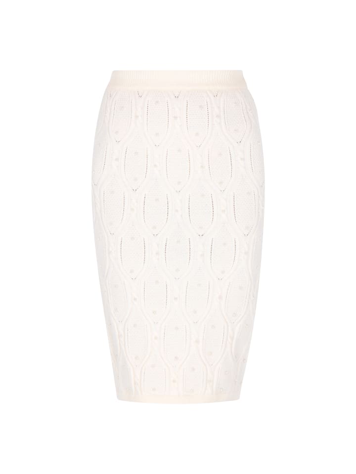 Юбка миди прямого кроя, сочетающая комфорт и утонченную элегантность. Высокая талия подчеркивает талию, а мягкий трикотаж с ажурным узором придает образу легкость и женственность. Декоративные бусины добавляют изящный и стильный штрих, а эластичная ткань обеспечивает комфорт. Идеально подходит для повседневных образов, где важны комфорт и модный вид. Эта модель из коллекции Fashion Look.