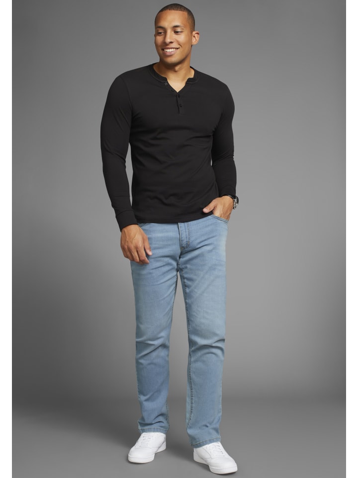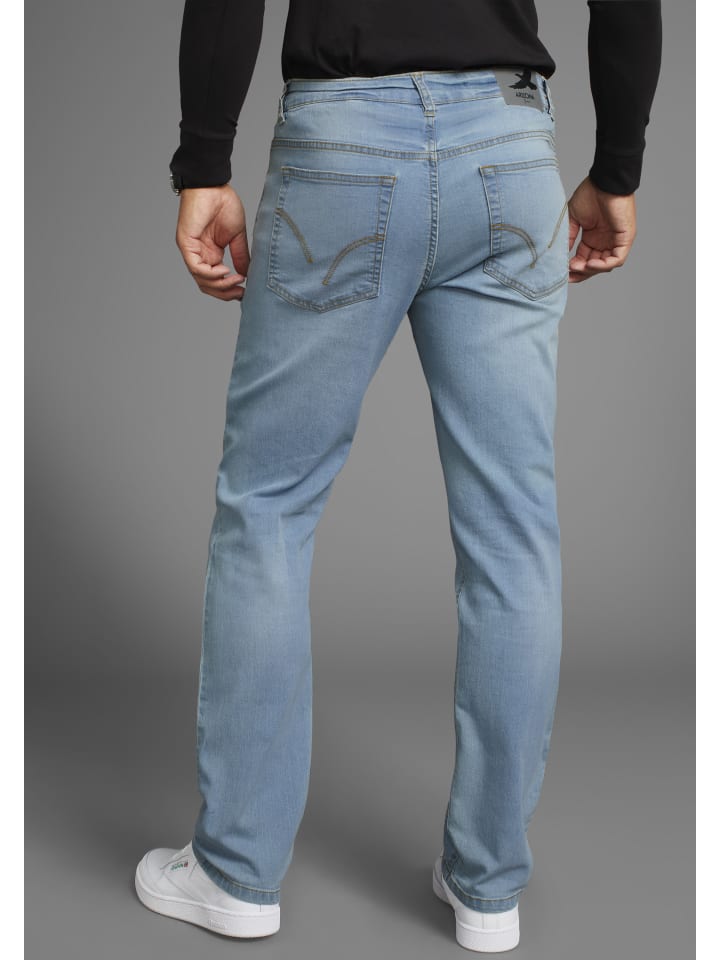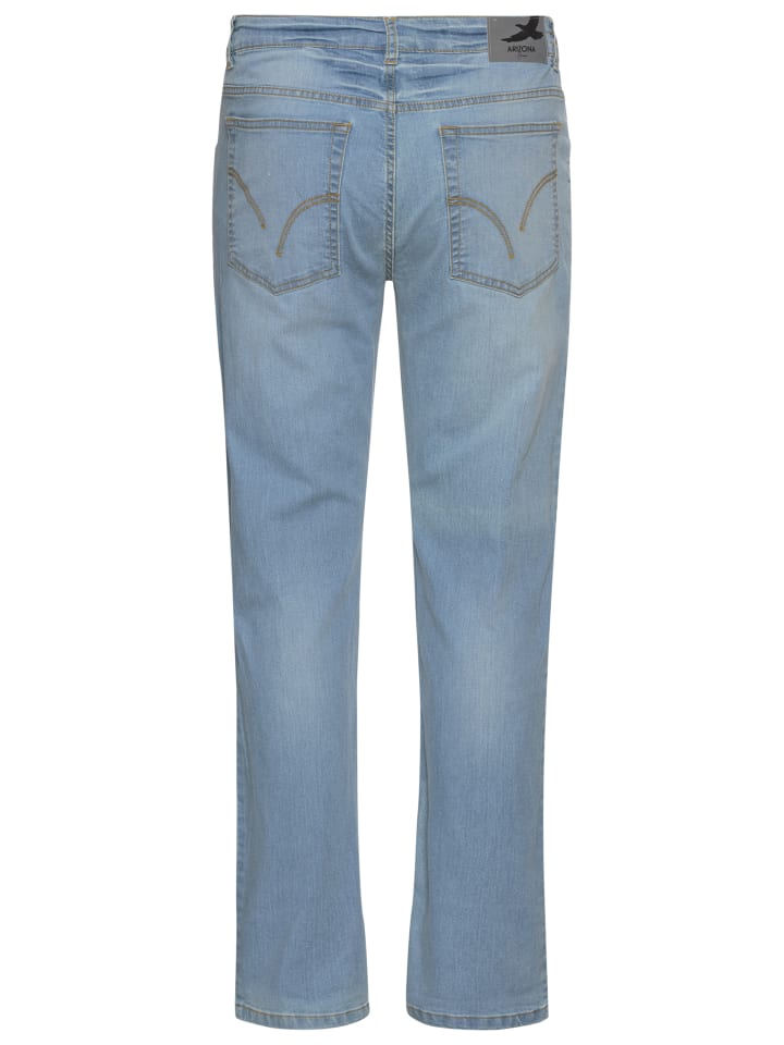 Джинсы с эластичным поясом из Аризоны. Шлевки, пять карманов, застежка на пуговицу и молнию. Стираные, с контрастной декоративной строчкой на задних карманах. Прямой крой, низкая посадка и удобная посадка. Комфортное качество с высоким содержанием хлопка.
