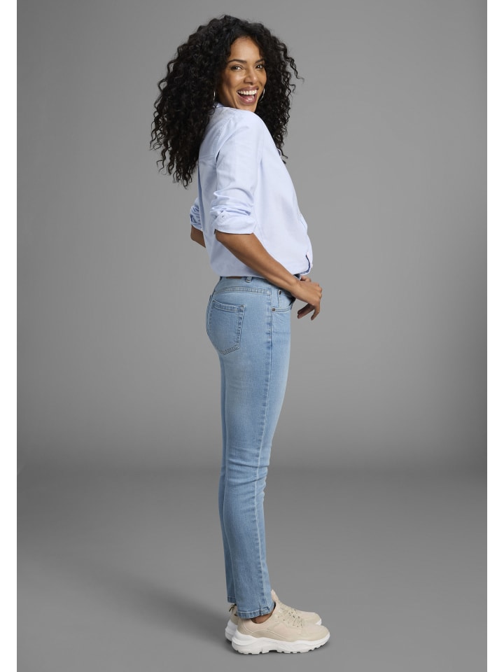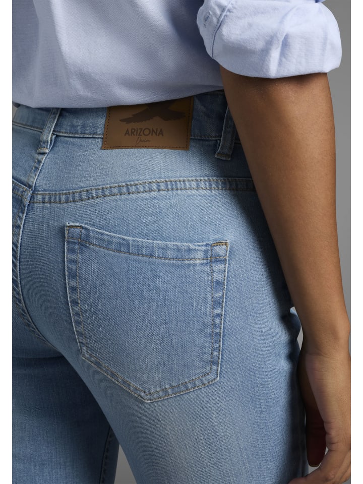 Джинсы Arizona с эффектом потертости и классическим 5-карманным кроем. Удобный пояс со шлевками, застежкой на пуговицу и молнию. Высокая талия облегает фигуру. Универсальные и удобные в использовании. Удобный эластичный деним.