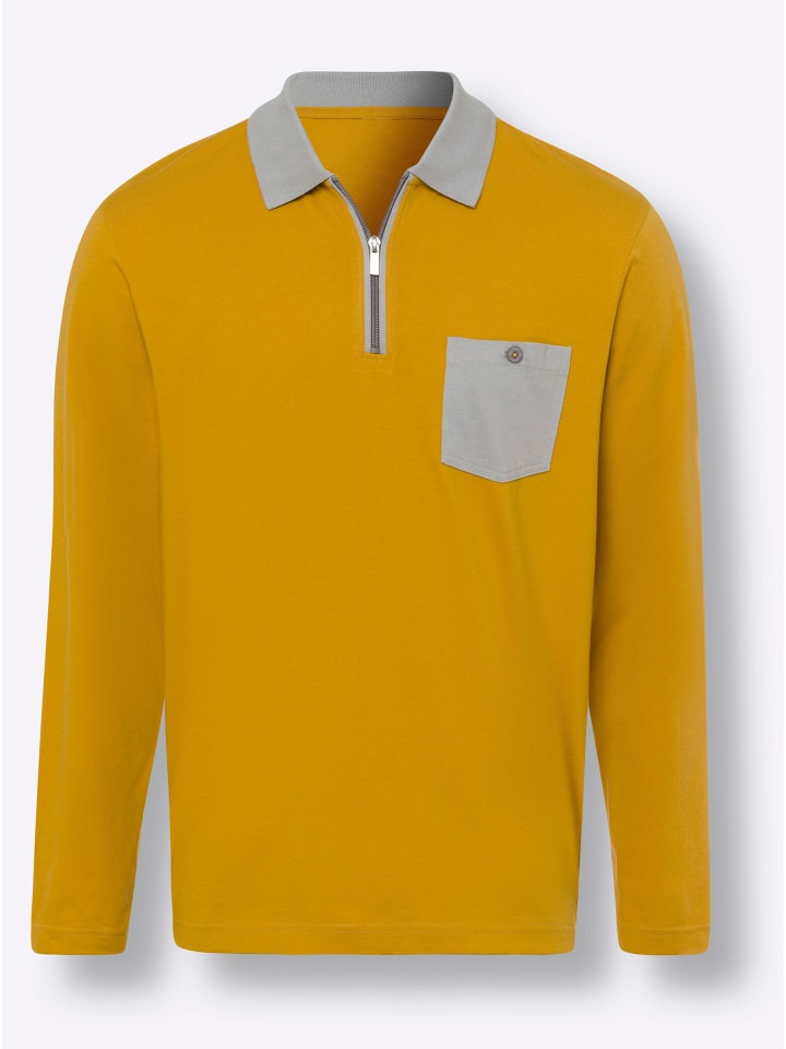 Эта приятная на ощупь рубашка-поло с длинными рукавами отличается контрастными акцентами: ребристым воротником-поло, короткой молнией и накладным нагрудным карманом.