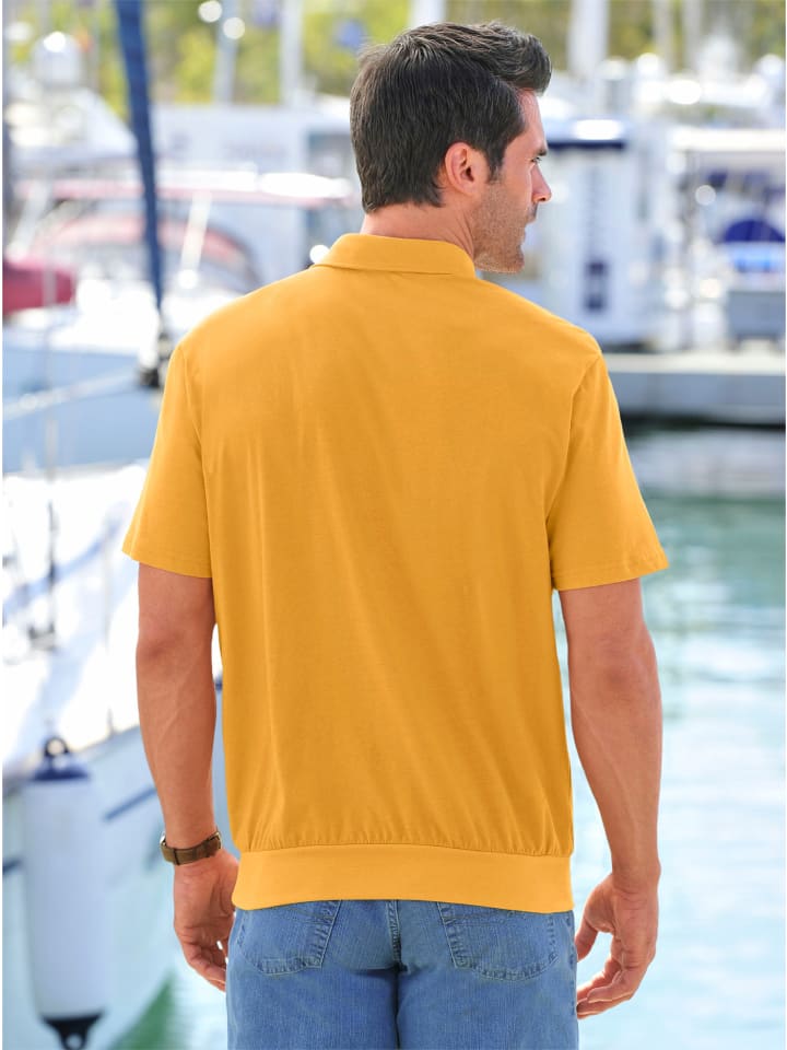 Эта рубашка с короткими рукавами яркая, как лето, с контрастной отделкой на воротнике-поло, планке с пуговицами и на нагрудном кармане. Нагрудный карман застегивается на пуговицу и украшен изящной вышивкой. Эластичные манжеты по низу. Приятная для кожи ткань.