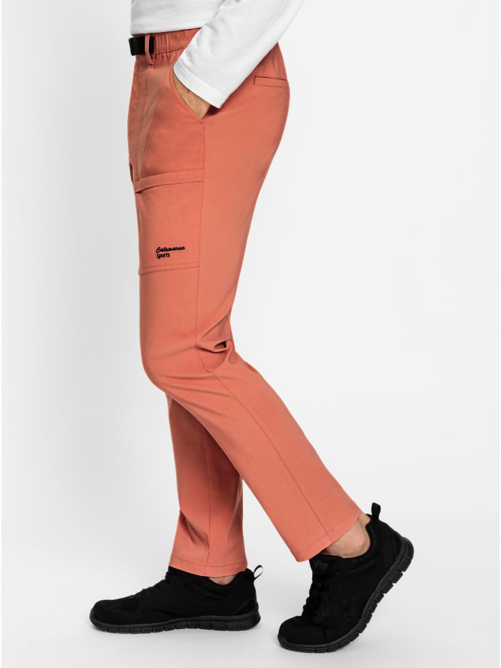 Абсолютный фаворит среди любителей активного отдыха: эти функциональные брюки от Catamaran Sports изготовлены из прочной эластичной ткани, обеспечивающей свободу движений. Благодаря Freshnezz они дышащие и быстросохнущие. Пояс застегивается на пуговицу и молнию, а также имеет шлевки для ремня. Ремень интегрирован в эластичный пояс и застегивается на пряжку. Многочисленные карманы вмещают все необходимое для мужчины: два боковых кармана и два прорезных кармана, по одному на каждом бедре и один сзади. Украшены логотипом.