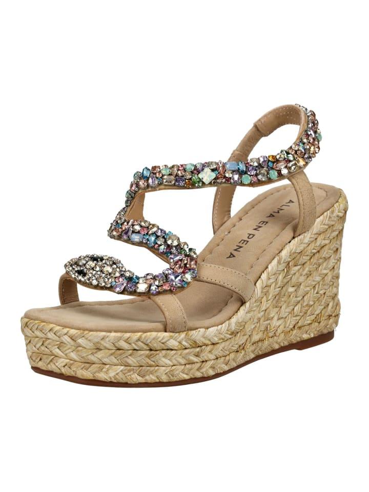 В этих летних босоножках на танкетке от ALMA EN PENA вы будете в центре внимания, куда бы вы ни пошли. Изящно декорированные ремешки со стразами делают эти босоножки поистине притягательным аксессуаром. Практичная эластичная вставка обеспечивает надежную посадку.