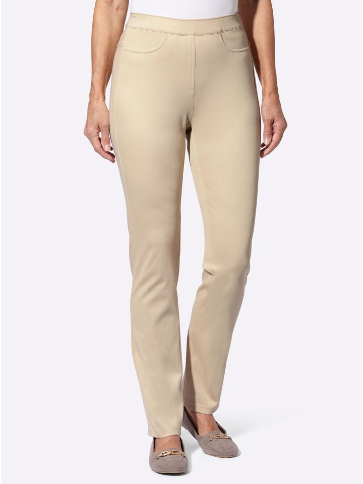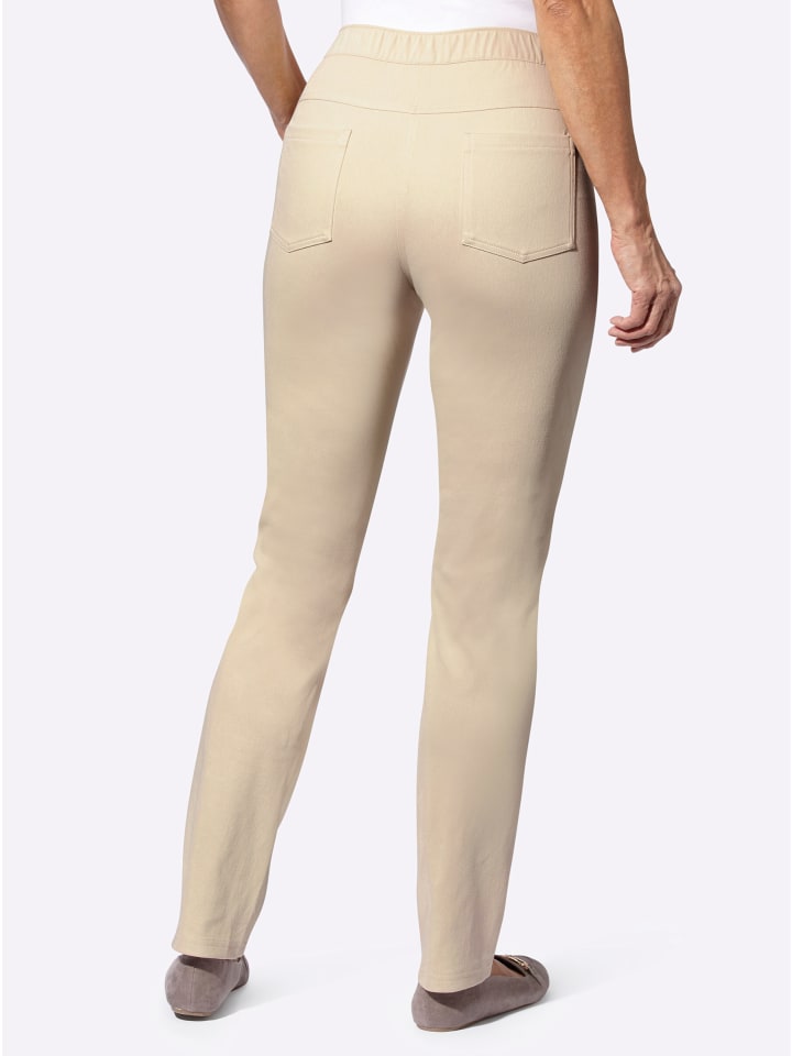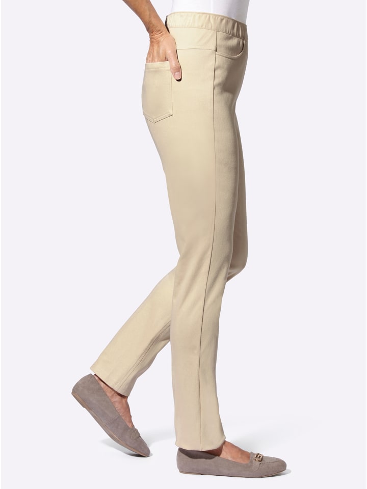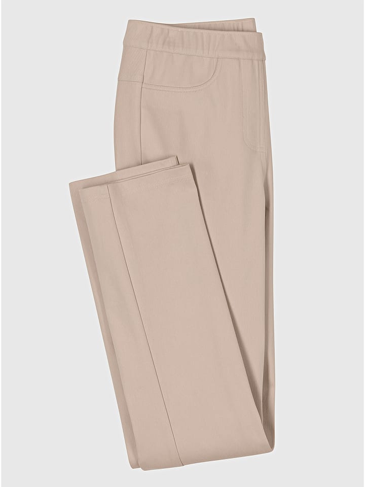 Эти брюки отлично смотрятся и невероятно удобны благодаря пришитому эластичному поясу и суперэластичной сарже. Они дополнены планкой с имитацией молнии и закругленными декоративными карманами. Накладные карманы сзади и кокетка завершают образ. Длина брючины примерно 34 см. Соответствует инициативе «Сделано в Африке» (Catton Made in Africa).