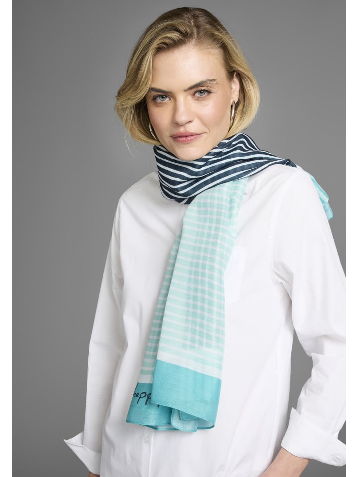 Модный шарф в петролеум и белом цвете Laura Scott