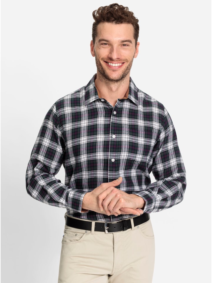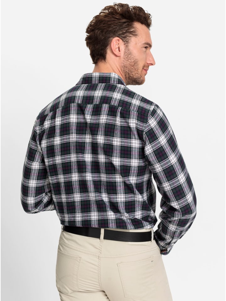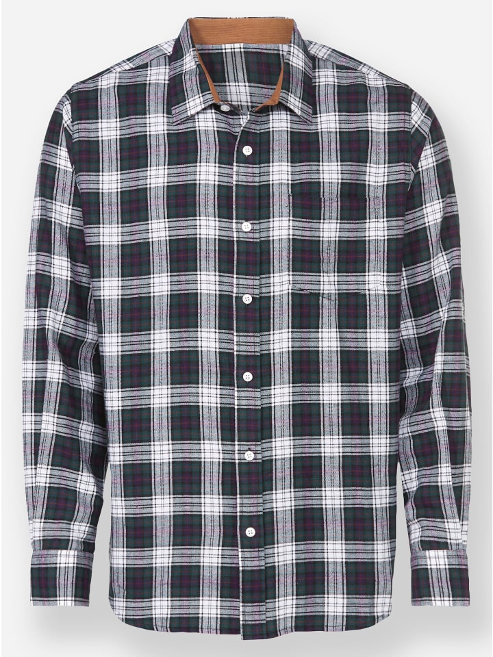 Рубашка с длинными рукавами от Marco Donati из высококачественной окрашенной пряжей клетчатой ткани на теплой фланели. Вельветовая отделка на внутренней стороне воротника и манжет Kent добавляет стильный штрих. Застежка на пуговицы по всей длине и нагрудный карман. Слегка закругленный низ. В соответствии с инициативой «Сделано в Африке» (Cat)