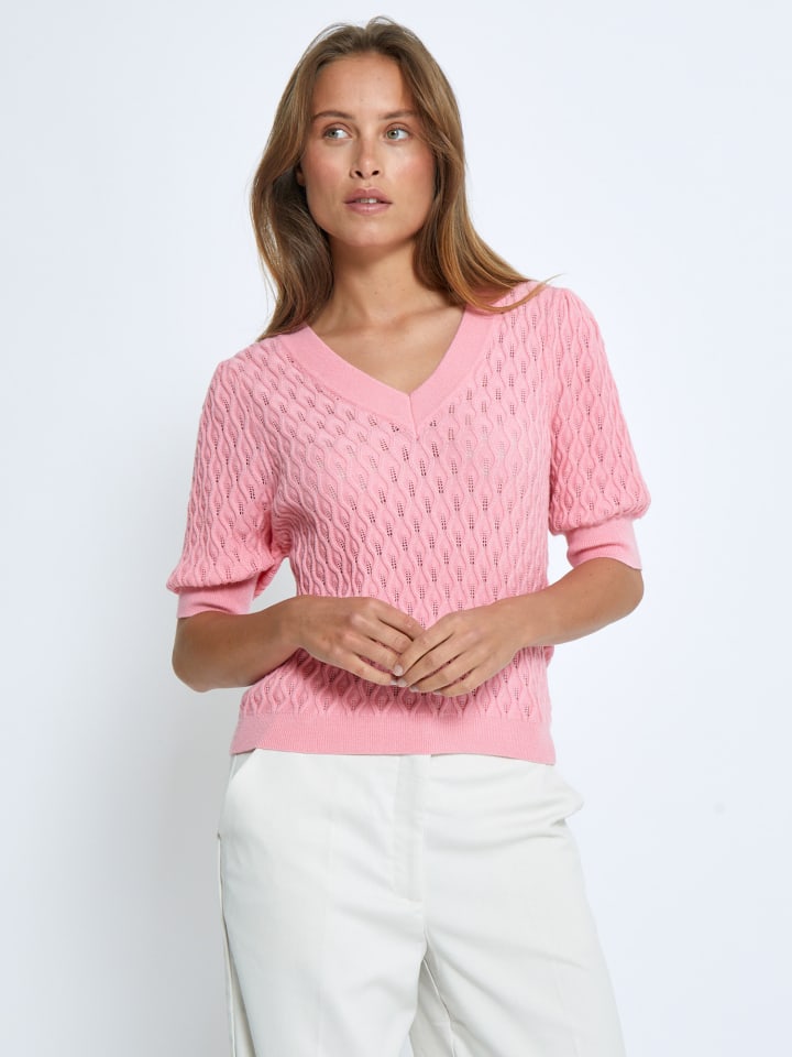 Футболка Rosalia с рукавами-буфами и V-образным вырезом - незаменимая вещь. Она изготовлена из высококачественной вискозы, полиэстера и нейлона. Красивый рисунок на футболке притягивает взгляд.