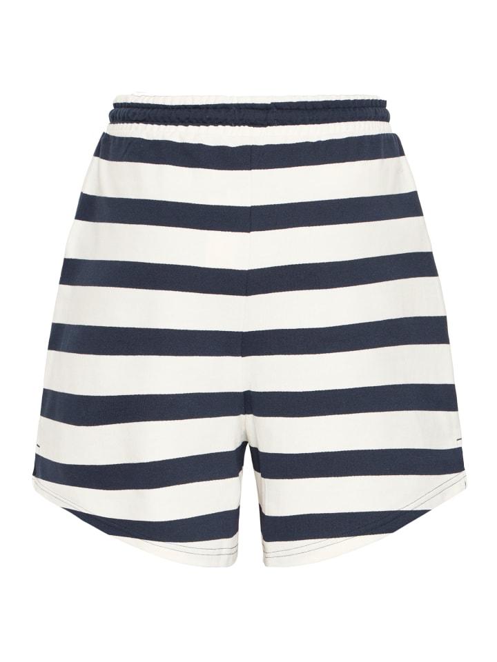 Полосатые шорты классического кроя с эластичным поясом и кулиской. Мягкий крой, средняя длина, боковые карманы.