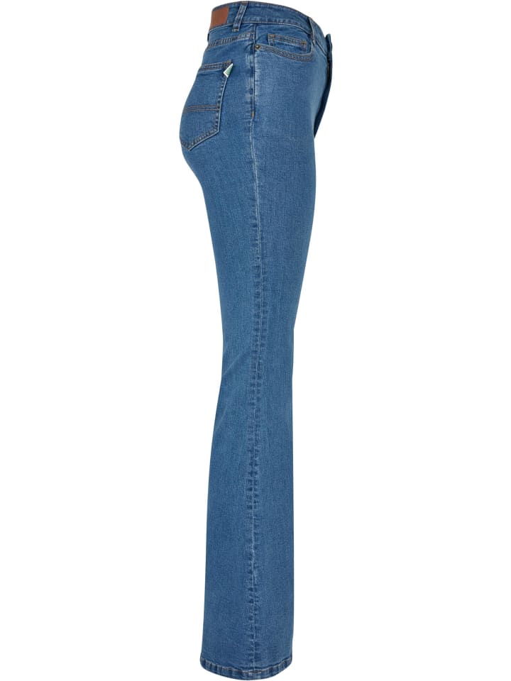 Эти облегающие женские джинсы добавят ретро-стиля в ваш гардероб: 5 карманов с двумя задними карманами и высокая посадка на талии создают привлекательный силуэт, а широкие расклешенные штанины от колена и ниже добавляют эффектный акцент. Джинсовая ткань из органического хлопка с добавлением эластана обеспечивает комфортную носку.