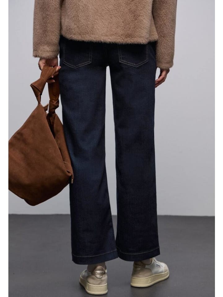 Вымытые джинсы Wide Leg Rinsed Wash - ваша новая любовь к дениму! Придайте новый свежий вид своему гардеробу с этими вымытыми широкими джинсами. Этот стиль сочетает в себе классический деним с современными тенденциями, предлагая комфортное ощущение, которое будет стильно сопровождать вас в повседневной жизни. Широкие брюки не только задают модный тон, но и подчеркивают вашу фигуру - независимо от того, выходите ли вы на улицу или отдыхаете дома. Модный крой сочетается с превосходным комфортом. Эти широкие джинсы характеризуются свободным, струящимся кроем, который не добавляет объема, но впечатляет чистыми линиями и привлекательной драпировкой. Благодаря добавленной эластичной ткани они идеально сидят и обеспечивают оптимальный комфорт в течение всего дня, не теряя своей формы. Легкая вымытая стирка создает изысканный образ, который можно сочетать как с повседневными, так и с шикарными нарядами. Почему вам понравятся эти джинсы: Современный широкий крой для посадки по фигуре, Легкая стирка с эффектом ополаскивания для минималистичного, универсального образа, Высокий комфорт при ношении благодаря содержанию эластана, Легко комбинируется с блузками, рубашками или трикотажем, Идеально подходит для офиса, отдыха или города. Материал и качество - почувствуйте разницу: Изготовленные из 72% хлопка, 27% полиэстера и 1% эластана, эти джинсы не только долговечны, но и мягки на ощупь. Смесь материалов обеспечивает сохранение формы и свободу движений - без ущерба для стиля. Универсальные варианты стилей: Сочетаете ли вы джинсы с кроссовками и рубашкой оверсайз или создаете элегантный образ с каблуками и блузкой, вымытые широкие джинсы из вымытой ткани адаптируются к вашему стилю. Игра с пропорциями особенно актуальна - короткий свитер или приталенная блузка создают отличный контраст с широким кроем брюк. Кому идеально подойдут эти джинсы? Вы любите создавать модные акценты, не жертвуя комфортом? Эти джинсы с широкими штанинами, промытые в процессе стирки, станут вашим новым фаворитом, если вы цените качество, стиль и индивидуальность. Идеально подходят для женщин, которые следят за модой и хотят носить новые тренды с индивидуальностью. Что еще нужно знать: Простой уход: машинная стирка при 30°C - пожалуйста, следуйте инструкциям по уходу. Стоимость доставки: всего 4,99 евро по Германии. Возврат без проблем: возможен в течение 30 дней с момента покупки. Специальная служба поддержки - мы к вашим услугам! - Проверенное качество Street One - Отличная посадка - Высокий комфорт при носке. Материал: - 72% хлопок - 27% полиэстер - 1% эластан