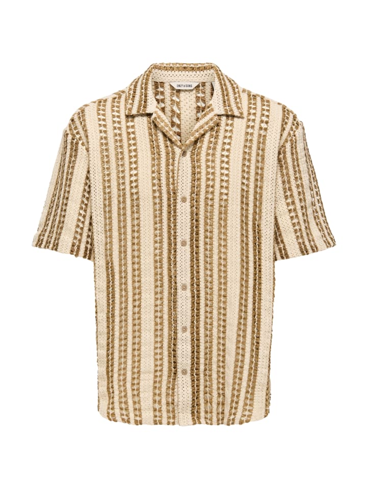 Эта стильная мужская рубашка от Only & Sons сочетает в себе летнюю легкость и модную изысканность. Вязаная фактура добавляет особый штрих дизайну, а полосатый узор обеспечивает свежий, вневременной образ. Отложной воротник подчеркивает непринужденную элегантность и делает рубашку идеальным компаньоном для теплых дней. Планка с пуговицами позволяет создавать разнообразные образы, а классический крой и высококачественные материалы обеспечивают максимальный комфорт. Незаменимая вещь для стильных мужчин!