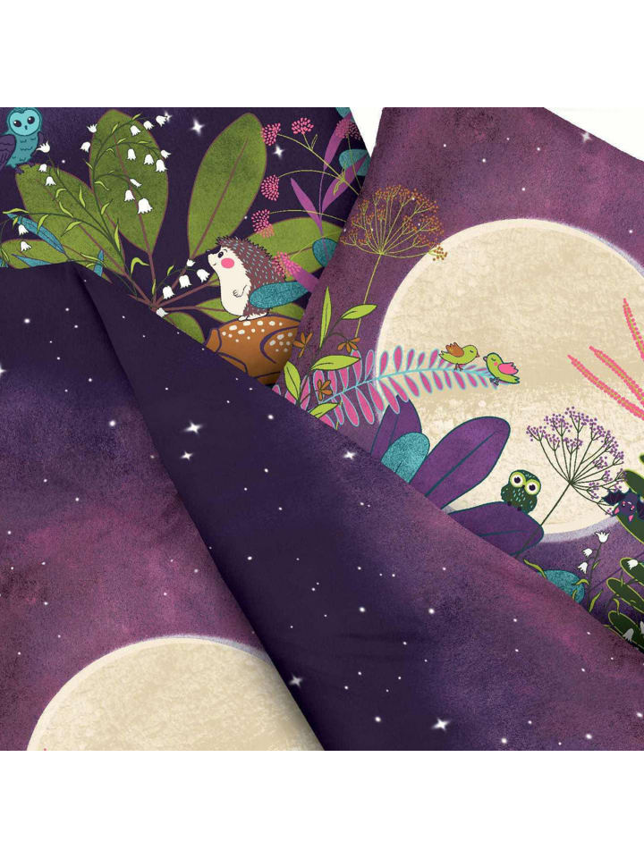 Детское постельное белье Kaeppel Renforcé «Лунный свет». Кто резвится на лугу ночью под полной луной? Это постельное белье с любовью разработано и оснащено двусторонней наволочкой, которая украшена множеством милых деталей. Гладкая, прочная и приятная на ощупь ткань обеспечит особенно крепкий сон. Она терморегулирует, приятна к телу и дышащая. Легко надевать благодаря практичной молнии.
