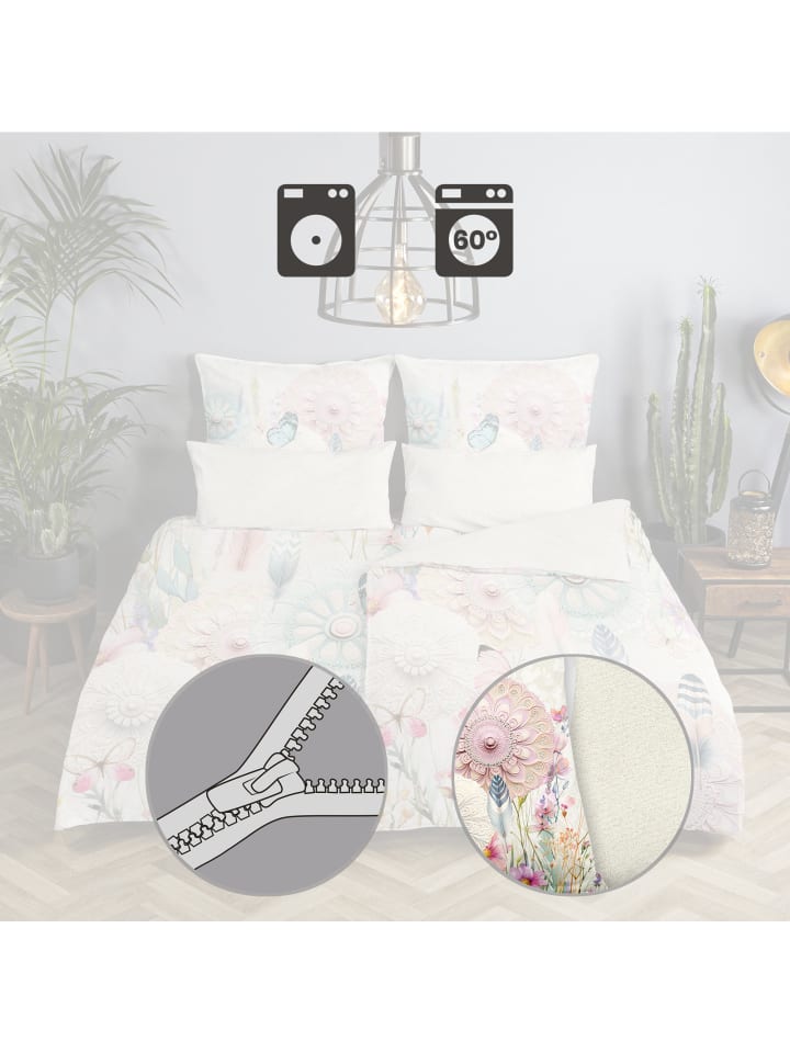 Двустороннее постельное белье Hip Satin "Maysa". Нежные цветы, игривые орнаменты, замысловатые бабочки и мягкие цвета источают очарование бохо и переносят вас в мир грез. Дизайн прекрасно контрастирует с тонким узором на изнанке. Это настоящее пиршество для глаз, которое сделает вашу кровать центром внимания. Тонкая, гладкая ткань очаровывает своим шелковистым блеском и мягкостью. Это роскошное удовольствие для кожи, а также дышащее, терморегулирующее и влагоотводящее покрытие. Быстро надевается благодаря практичной молнии.