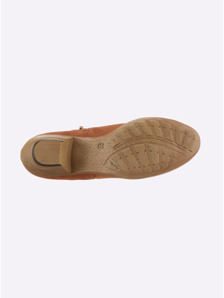 Повседневные ботильоны с ковбойским каблуком. Изготовлены из высококачественной коровьей замши. С эластичной вставкой для удобства надевания и снимания. Подкладка: синтетическая, стелька: кожа. Высота каблука примерно 45 мм.