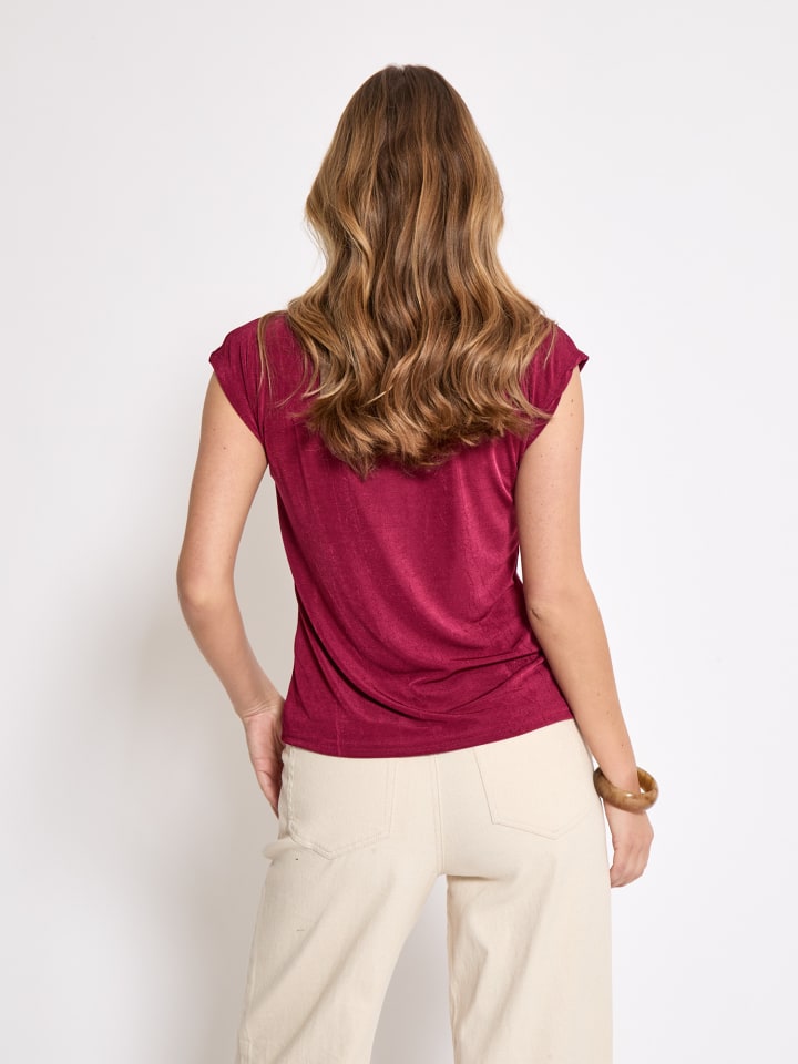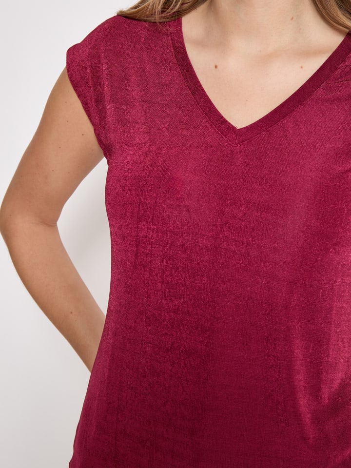 Легкая футболка с очень короткими рукавами. Футболка имеет круглый вырез горловины и свободный крой.