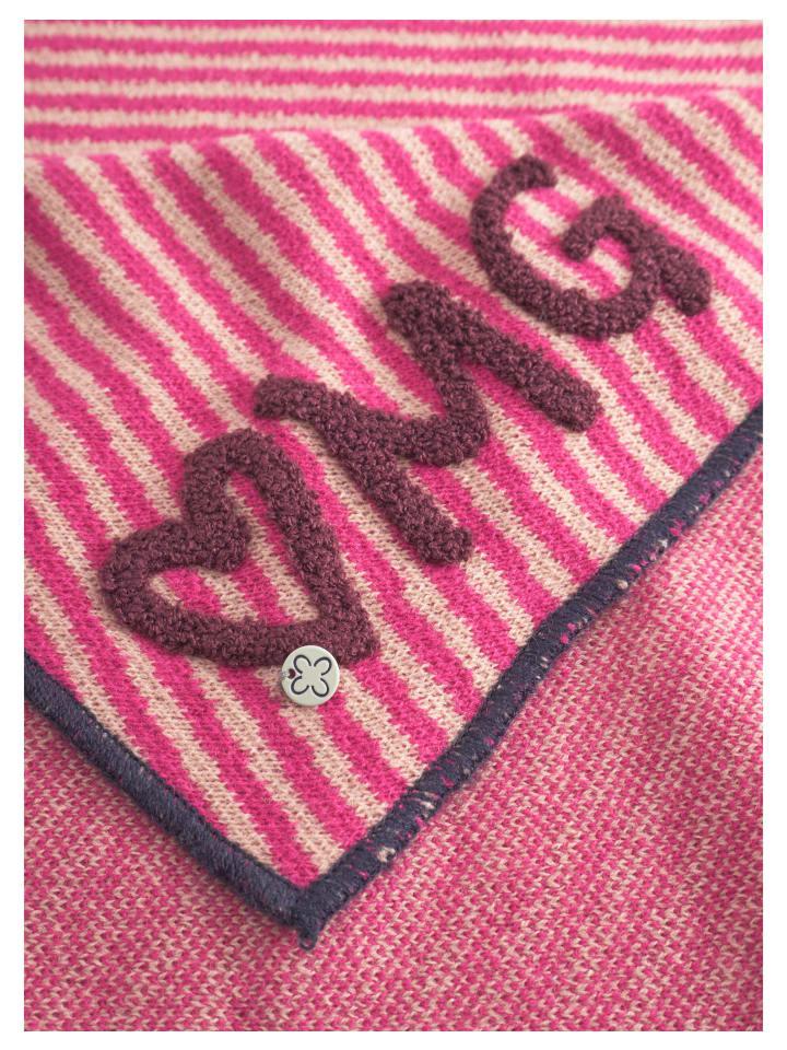 Повседневный, теплый и с очаровательными деталями: этот вязаный треугольный шарф впечатляет спортивными полосками и вышивкой в виде сердца OMG. Мягкая шерстяная пряжа дарит уютное тепло, а свободный крой универсален и легко комбинируется - идеально подходит для непринужденных зимних образов с индивидуальностью.