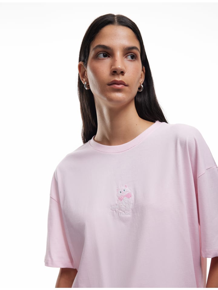 Откройте для себя эту очаровательную свободную футболку с короткими рукавами и классическим круглым вырезом. Вышивка придает особый шарм этой удобной хлопковой рубашке. Идеально подходит для повседневной носки, сочетая в себе стиль и комфорт. Сочетайте ее с джинсами или юбками для создания повседневного образа, который легко адаптировать.