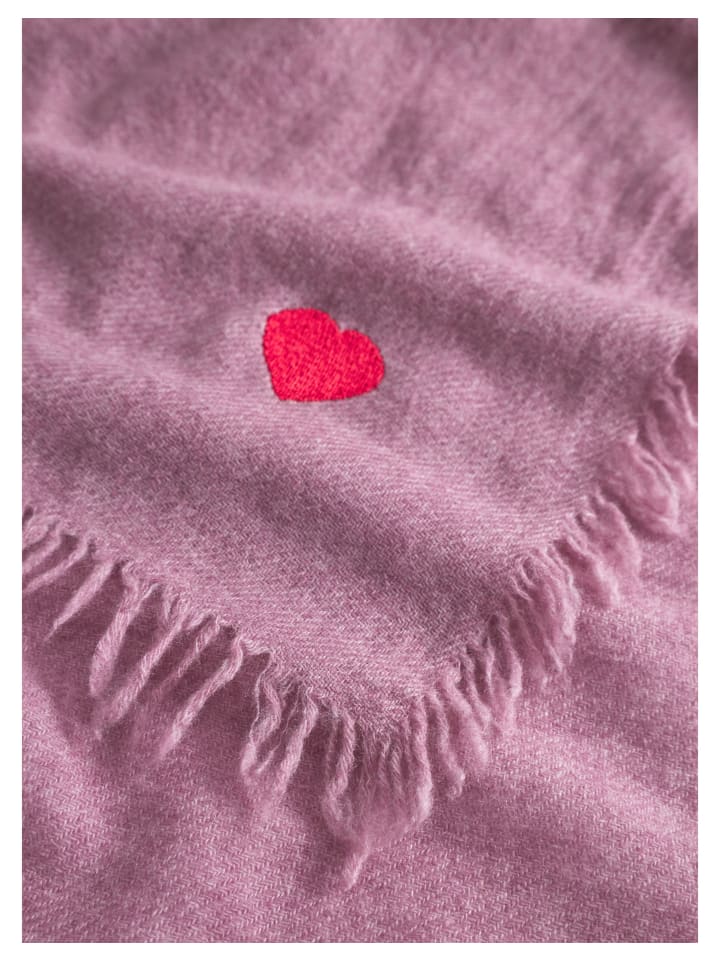 Нежный, но выразительный: этот высококачественный шарф из тонкой смеси шерсти и кашемира украшен очаровательной вышивкой в виде красного сердца. Однотонный нежно-розовый цвет подчеркивает его современную простоту, а мягкий материал стильно сочетает тепло и комфорт - фаворит для женственных зимних образов.