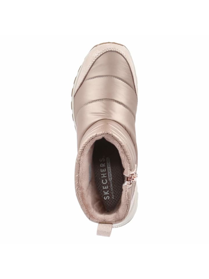 Стуканы Skechers UNO RUGGED PUFER DAZE сочетают в себе функциональные детали и гламурную отделку с металлическим золотом. Стеганый текстильный верх, мягкая теплая подкладка и стелька из пеноматериала с эффектом памяти создают ощущение комфорта с самого первого шага. Текстильная стелька, мягкий воротник и закругленная форма обеспечивают комфорт, а молния и язычок позволяют легко надевать и снимать кроссовки. Усиленные области пятки и носка обеспечивают устойчивость, а гибкая нескользящая подошва со смотровым окошком в области пятки обеспечивает надежное сцепление на зимних трассах. Эта модель соответствует размеру и идеально подходит для взрослых женщин. Модный совет: блестящие чулки, атласное платье-комбинация и свободный трикотажный кардиган создают современный микс уюта и гламура.