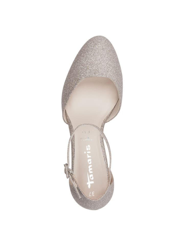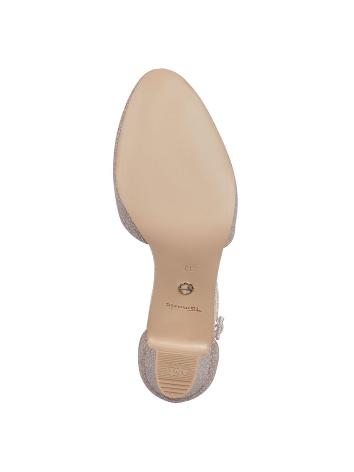 Создайте стильный образ для праздничного мероприятия в этих элегантных туфлях-лодочках, выполненных из привлекательного сочетания материалов и украшенных мерцающей отделкой. Их классический дизайн в нежных оттенках, таких как белый и розовое золото, гармонично впишется в любой гардероб, добавив нотку женственности. Прочный блочный каблук высотой 6 см обеспечивает комфорт, а модные ремешки с пряжками обязательно привлекут внимание. Идеально подходит для свадеб и вечерних мероприятий.